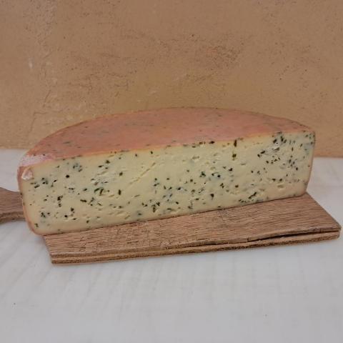 Ingrédients : lait cru entier de vache, ferments lactiques, sel, présure, enrobage : oignon, poivron, ail, persil, poudre de lactose.